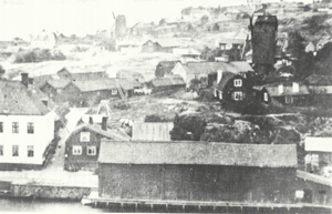 Krogen på bilden ”Trätrappan” med anor från 1700-talet låg mittemot fästningen bredvid Tullhuset från 1736 till vänster på bilden. Krogen var artilleristernas stamlokus men på fredagskvällarna lade skutskepparna från skärgården beslag på krogen innan de seglade vidare med fisk, filbyttor, blommor och bär till Stockholm. Det var fest, sång och dansades barfota för att inte slita på skosulorna hela natten.