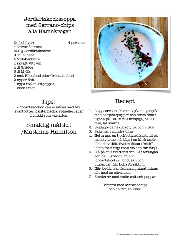 Jordärtskockssoppa la Hamnkrogen